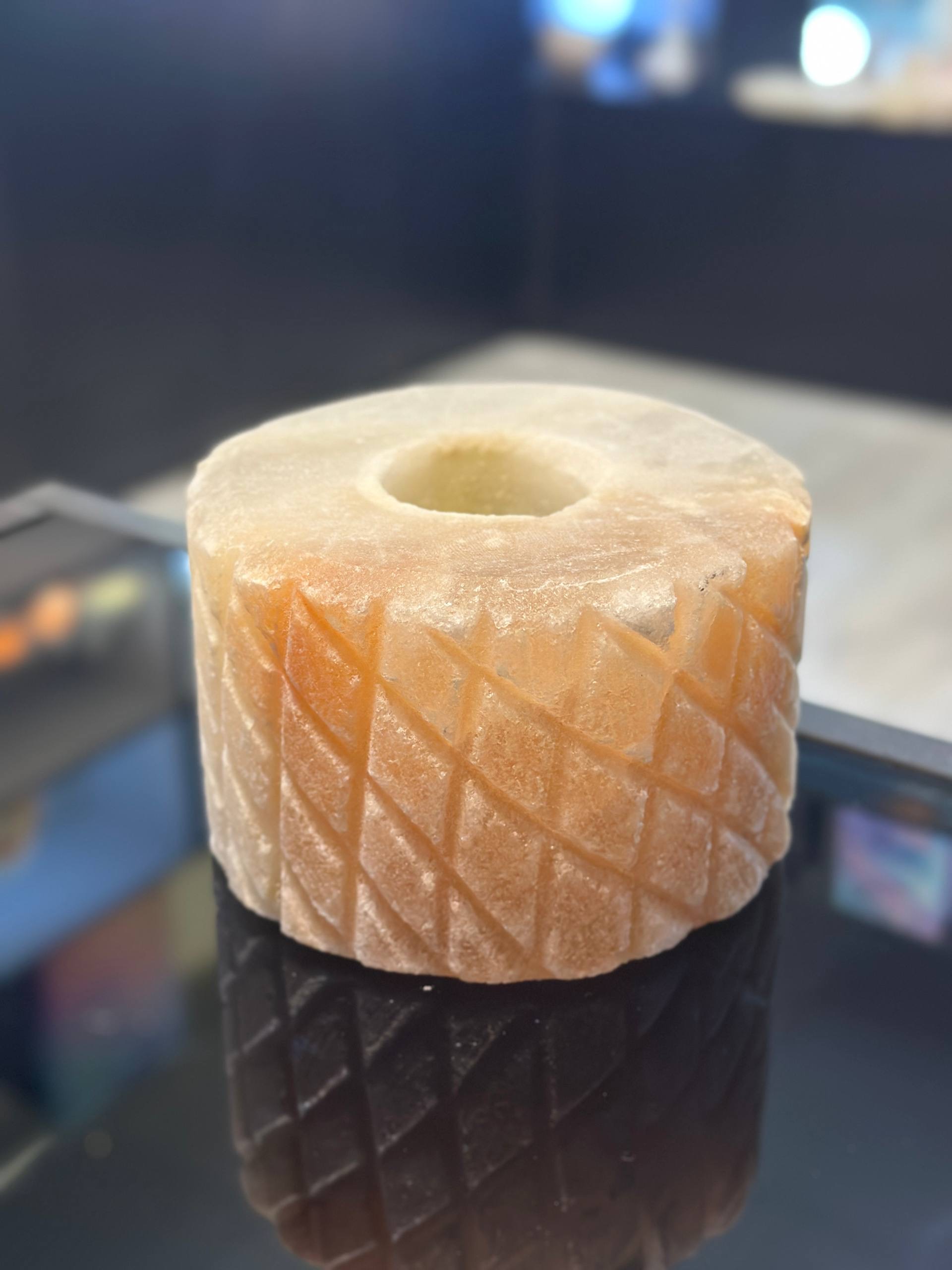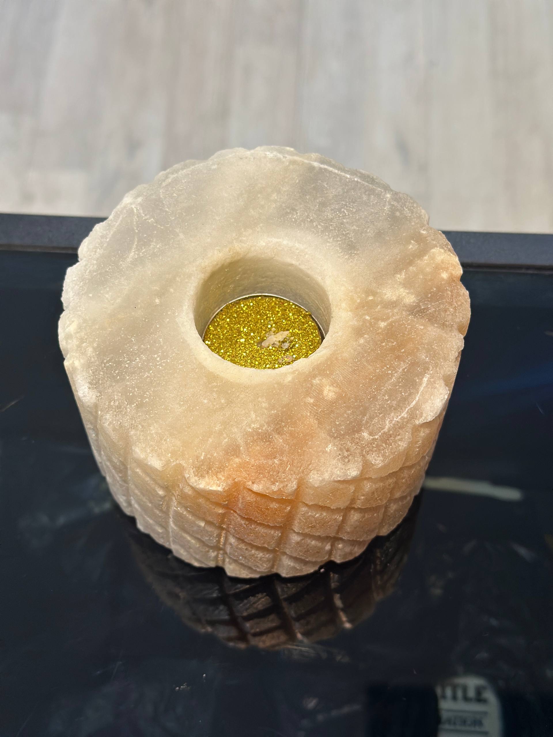 جا شمعی سنگ نمک طبیعی طرح آناناس بزرگ جنس مجسمه از پلی استر جنس گوی از سنگ نمک طبیعی هر سنگ نمک با دیگری متفاوت است و هیچ محصولی کاملا یکسان نیست