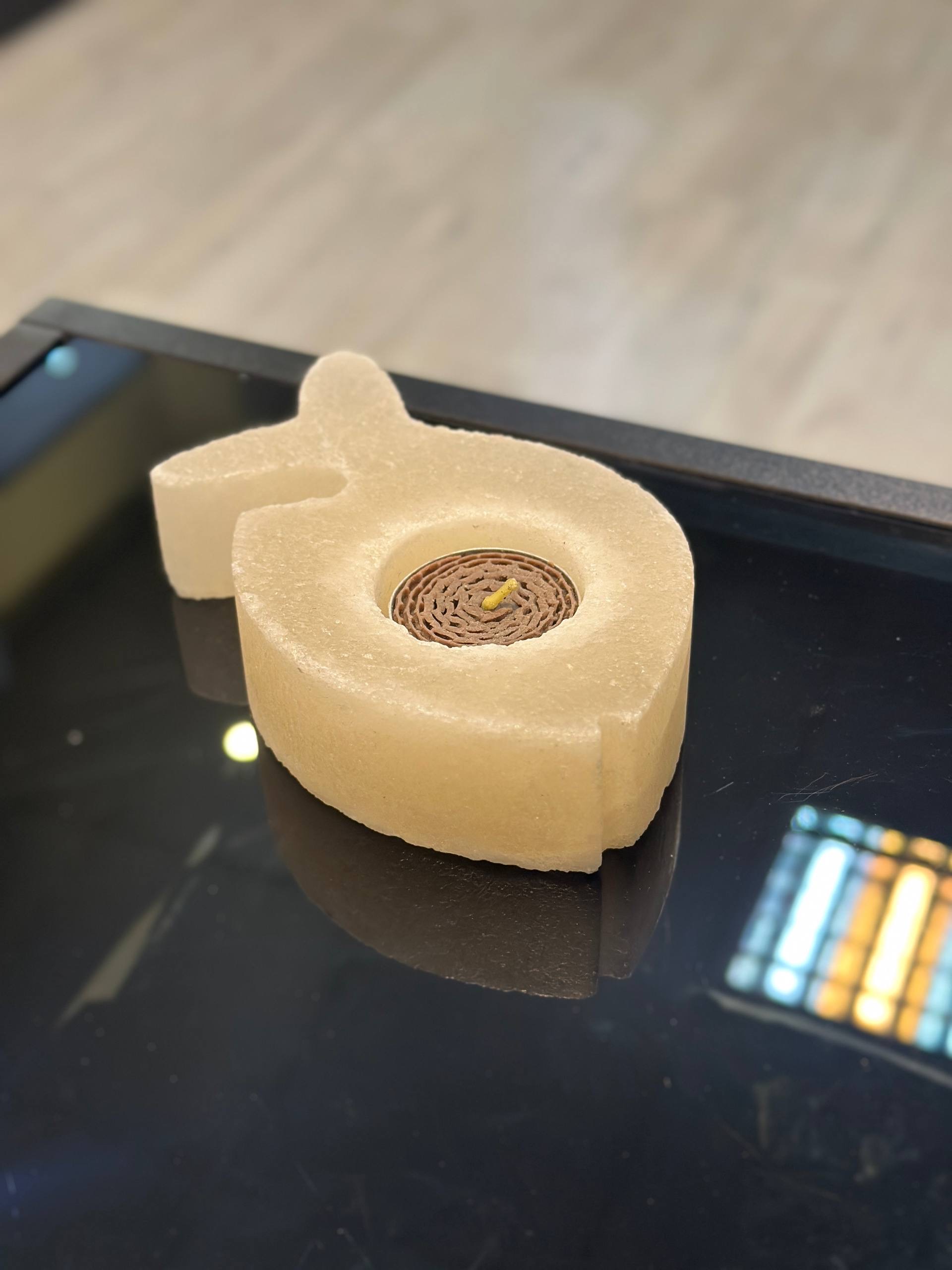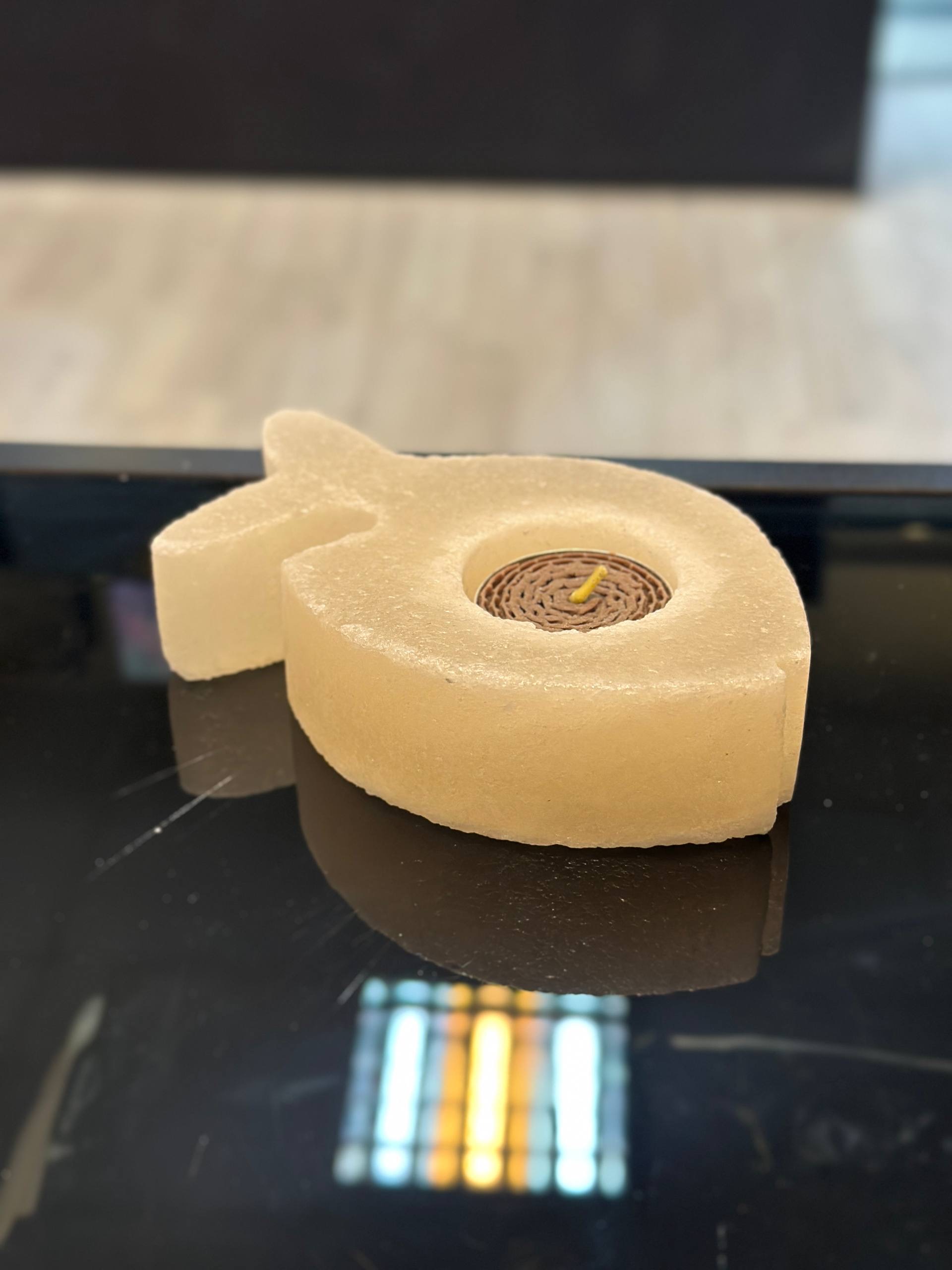 جا شمعی سنگ نمک طبیعی طرح ماهی جنس مجسمه از پلی استر جنس گوی از سنگ نمک طبیعی هر سنگ نمک با دیگری متفاوت است و هیچ محصولی کاملا یکسان نیست
