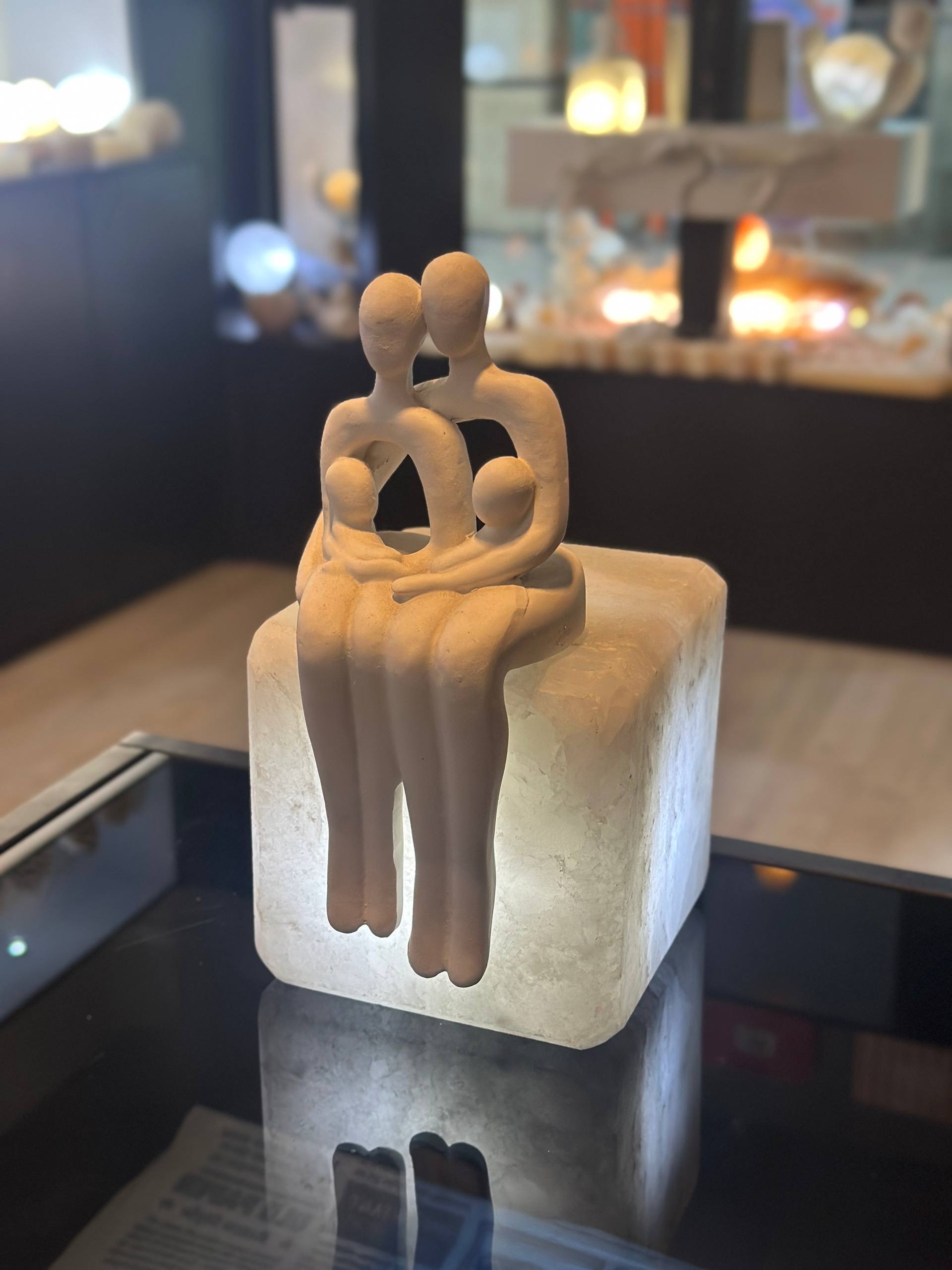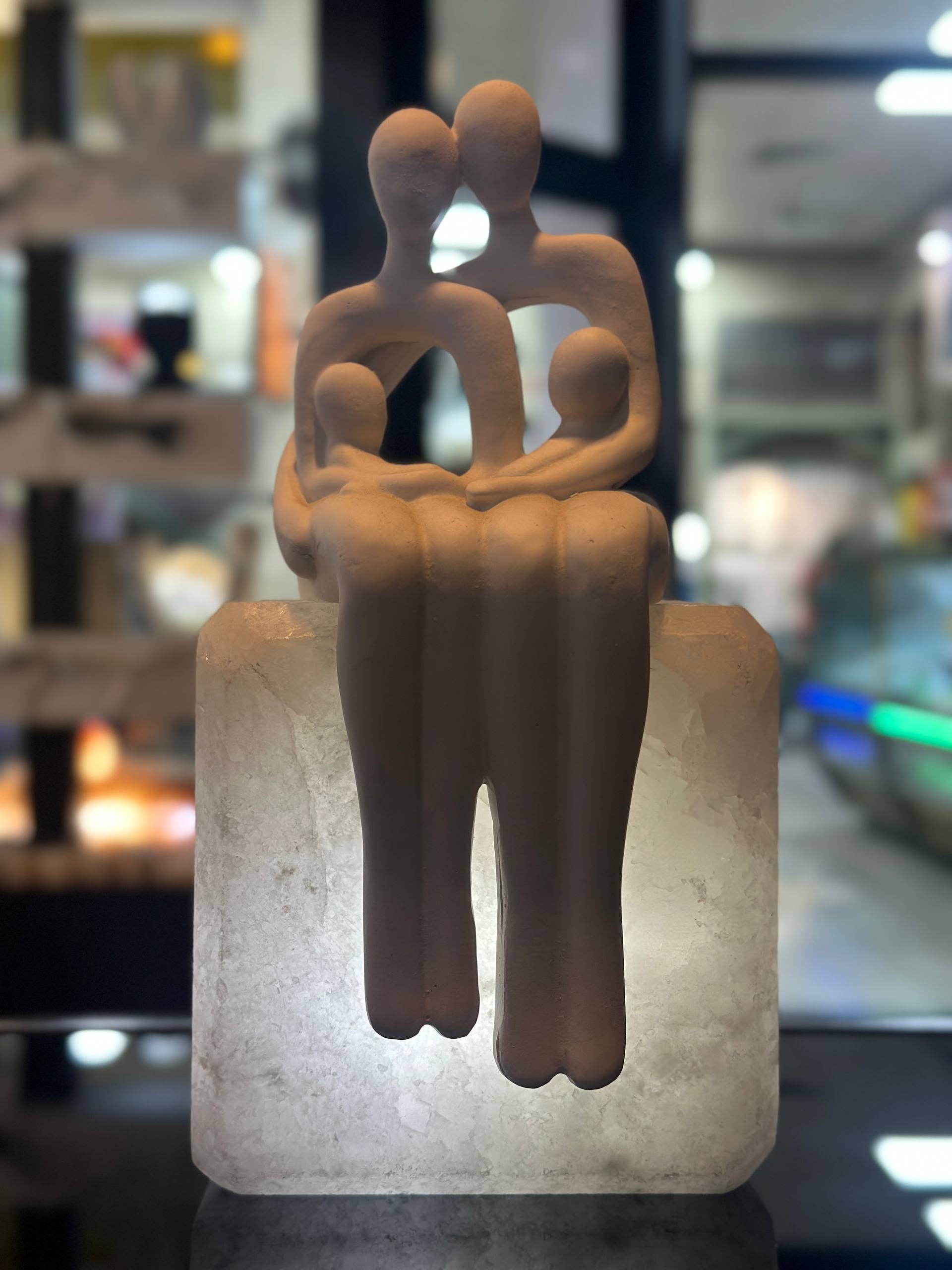 آباژور سنگ نمک طبیعی طرح خانواده جنس مجسمه از پلی استر جنس گوی از سنگ نمک طبیعی هر سنگ نمک با دیگری متفاوت است و هیچ محصولی کاملا یکسان نیست