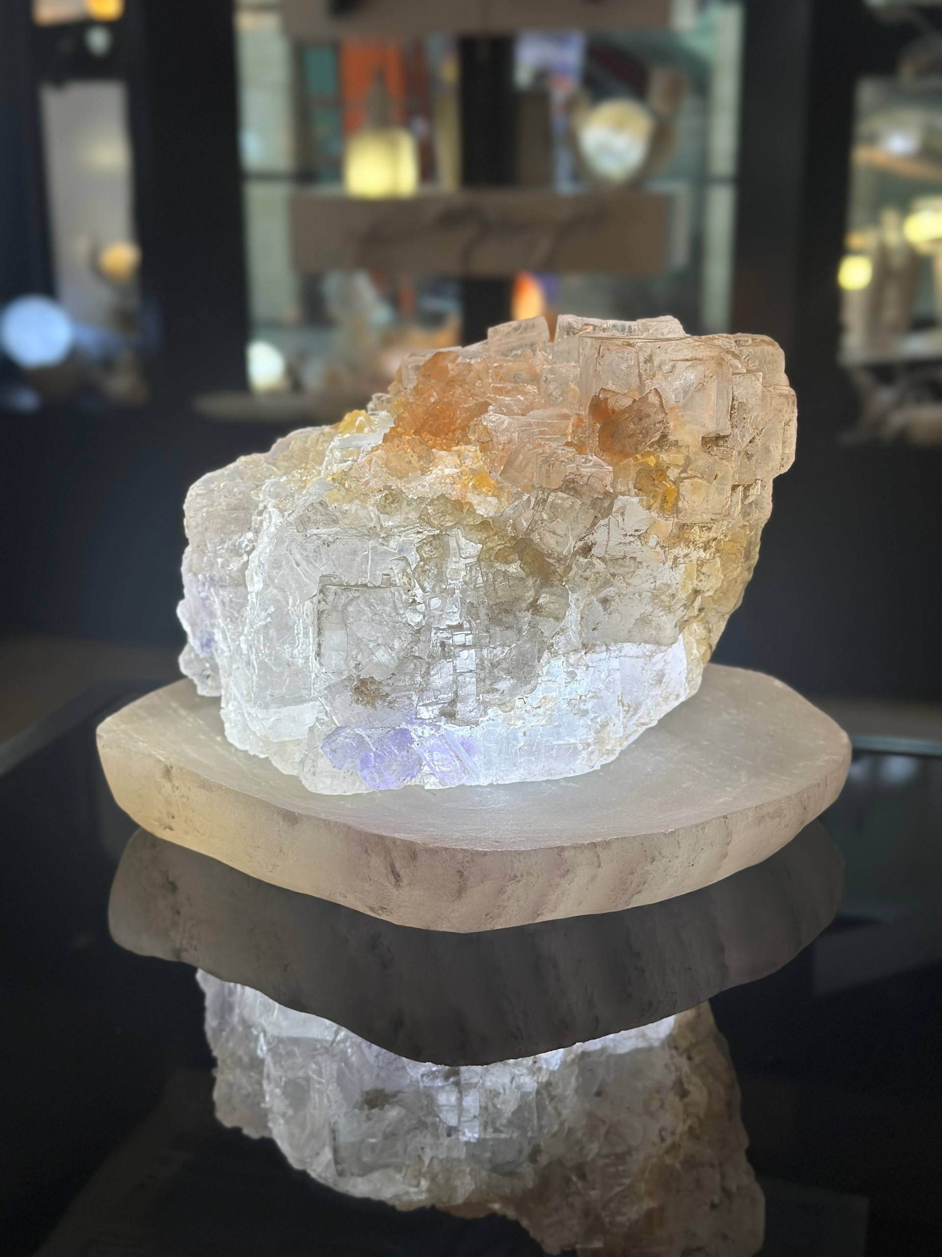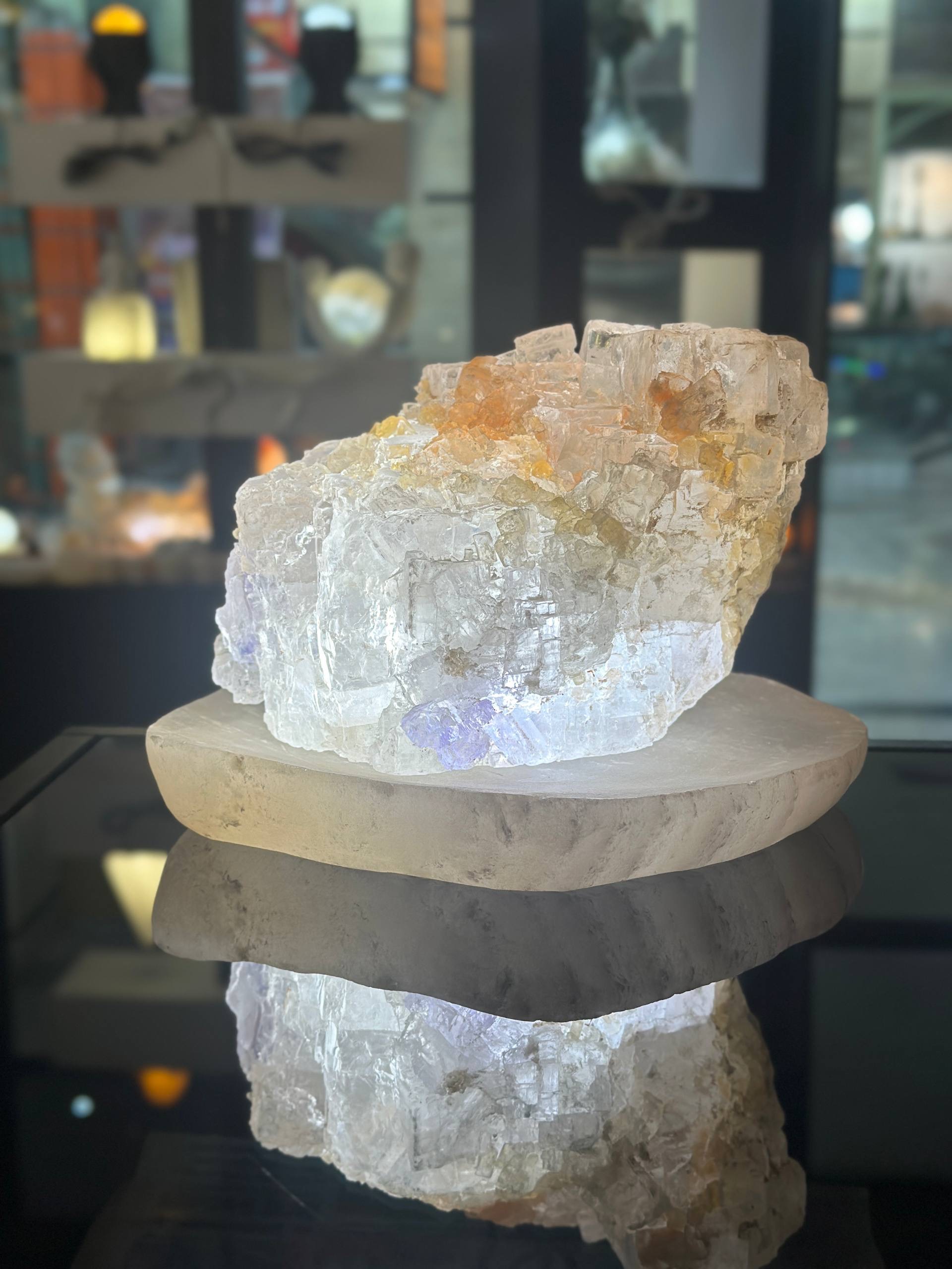 آباژور کریستالی سنگ نمک طبیعی طرح صخره با سنگهای کریستالی سفید صورتی آبی جنس مجسمه از پلی استر جنس گوی از سنگ نمک طبیعی هر سنگ نمک با دیگری متفاوت است و هیچ محصولی کاملا یکسان نیست