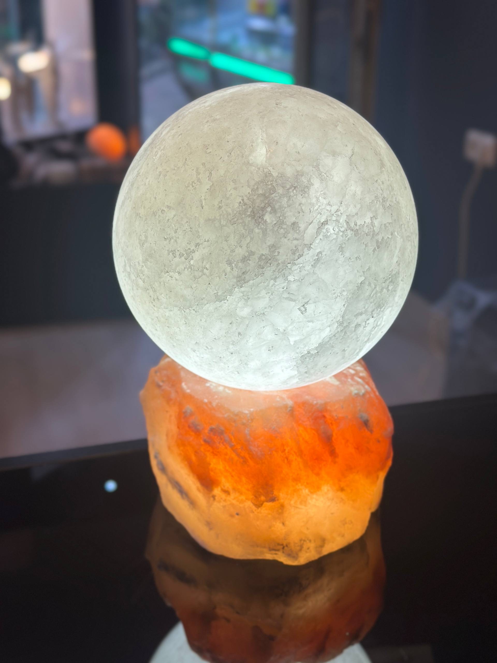 آباژور سنگ نمک طبیعی طرح صخره با گوی 16 جنس مجسمه از پلی استر جنس گوی از سنگ نمک طبیعی هر سنگ نمک با دیگری متفاوت است و هیچ محصولی کاملا یکسان نیست