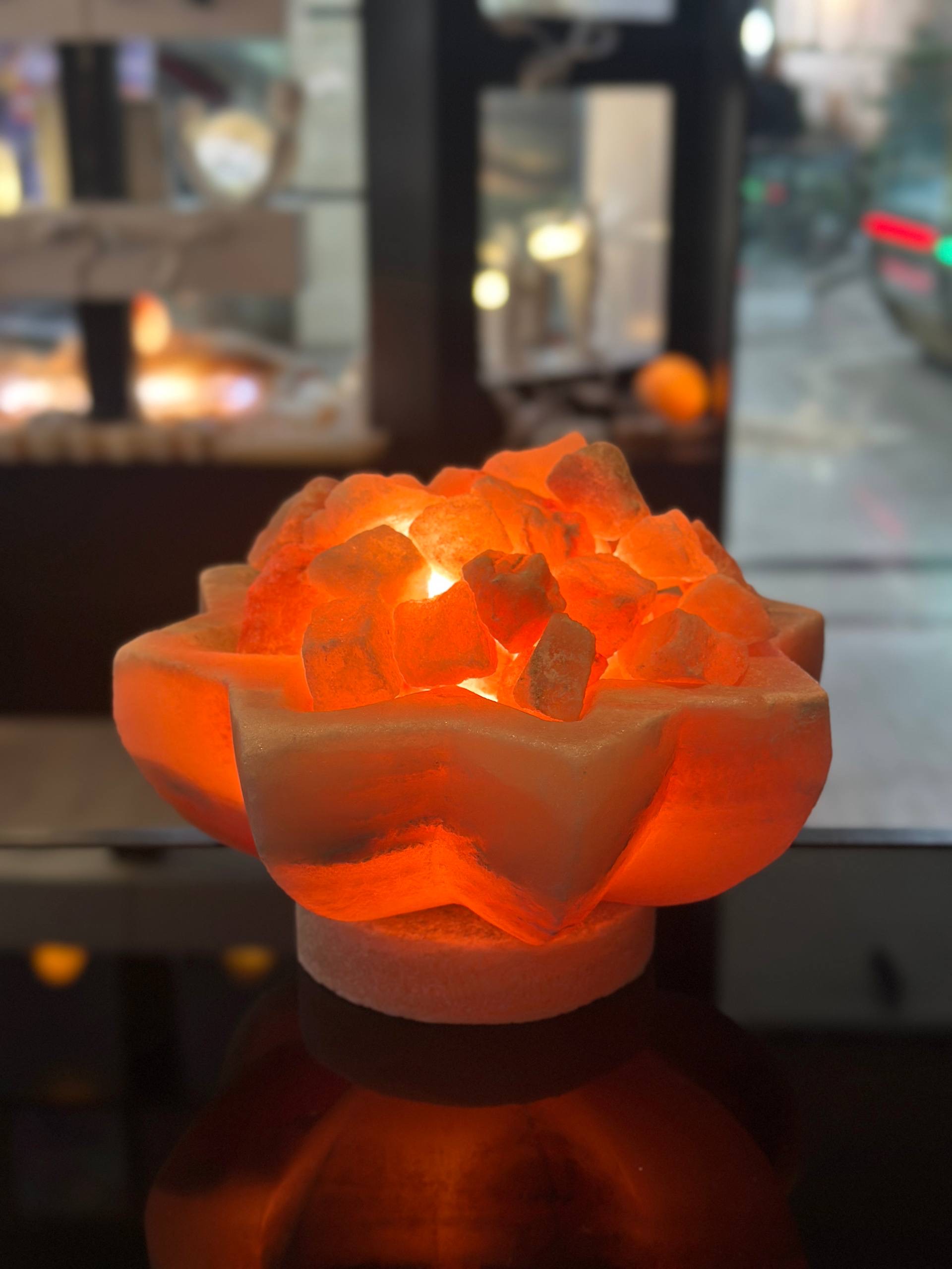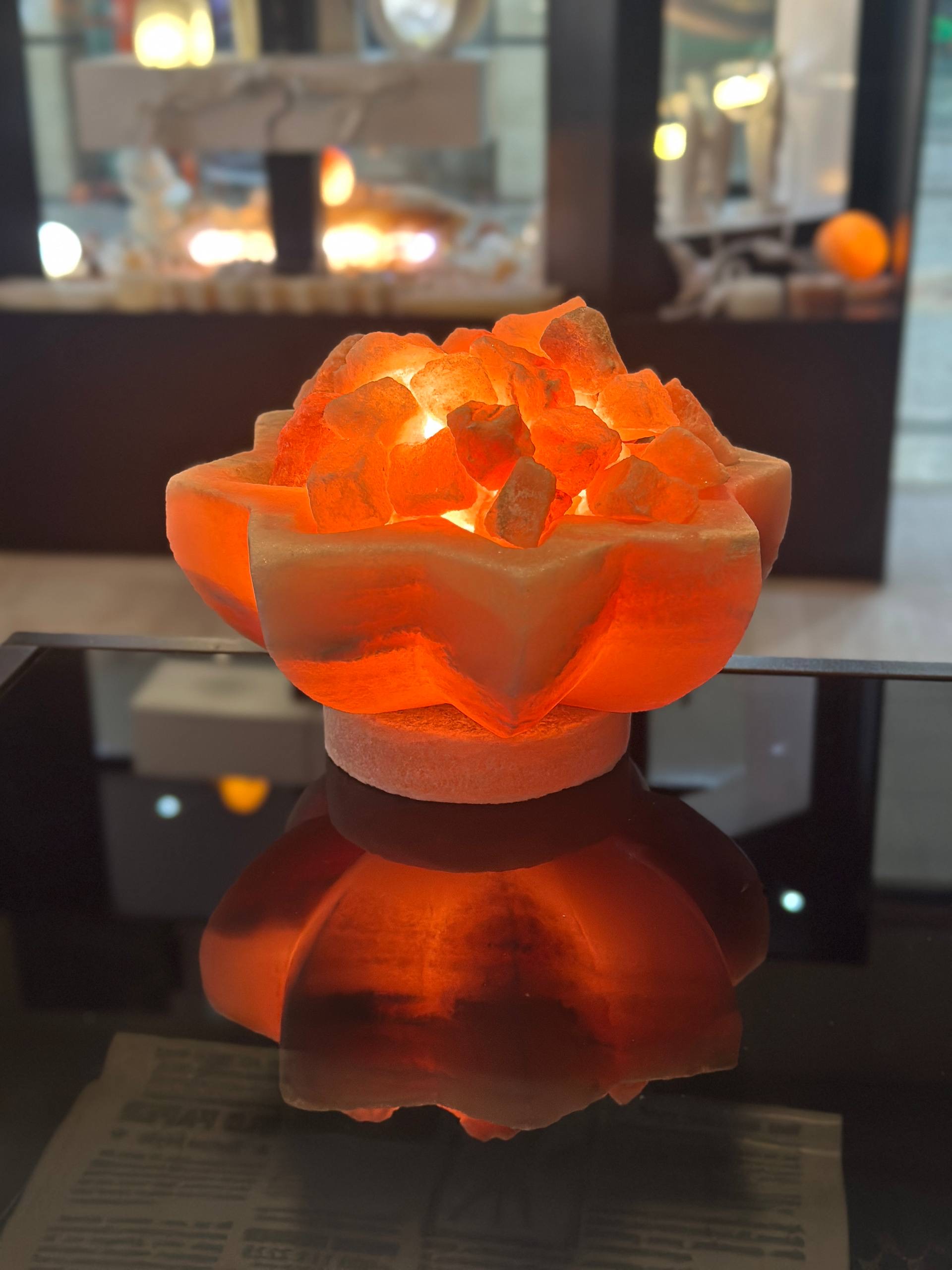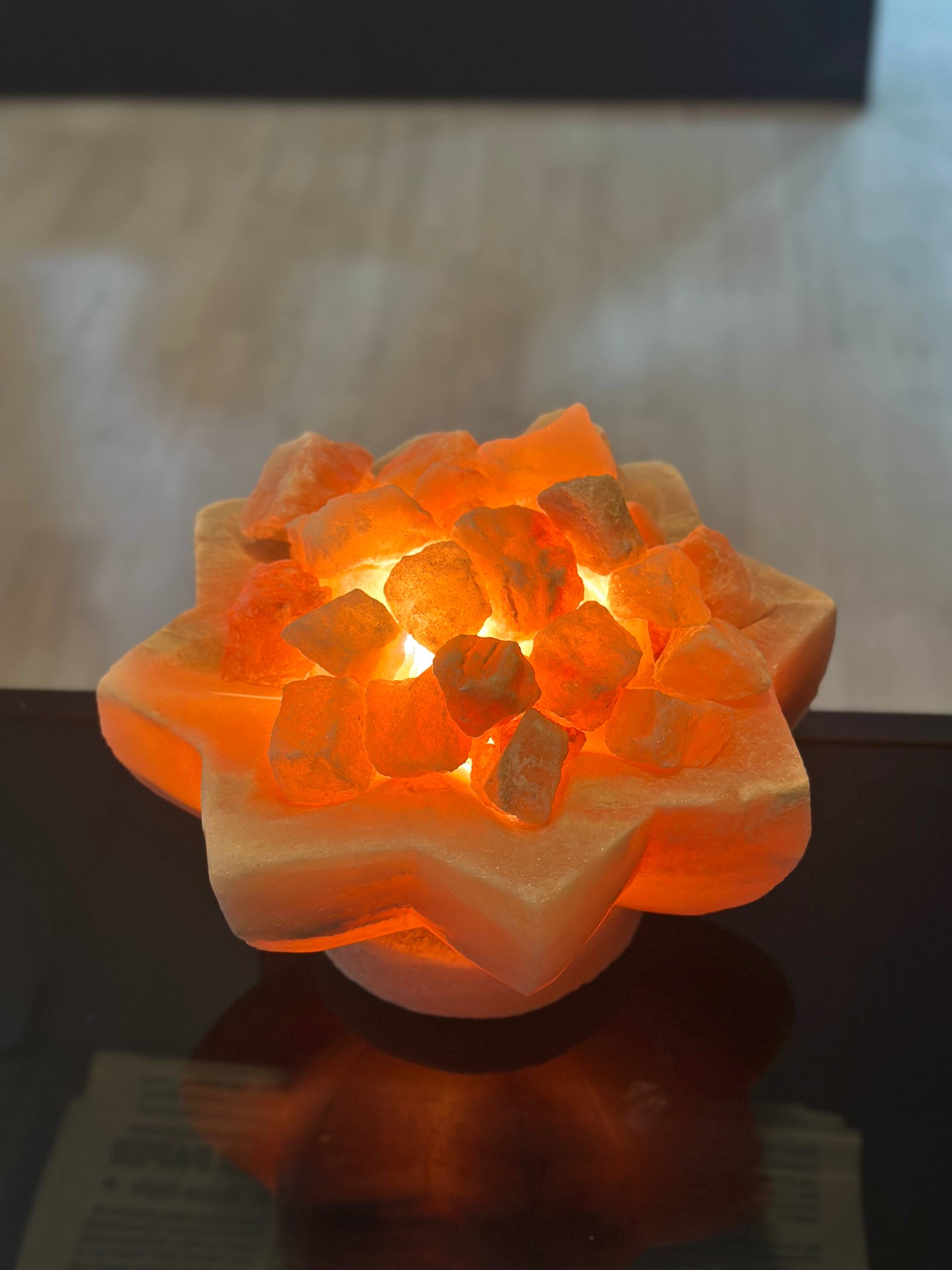 آباژور سنگ نمک طبیعی طرح کاسه ستاره جنس مجسمه از پلی استر جنس گوی از سنگ نمک طبیعی هر سنگ نمک با دیگری متفاوت است و هیچ محصولی کاملا یکسان نیست