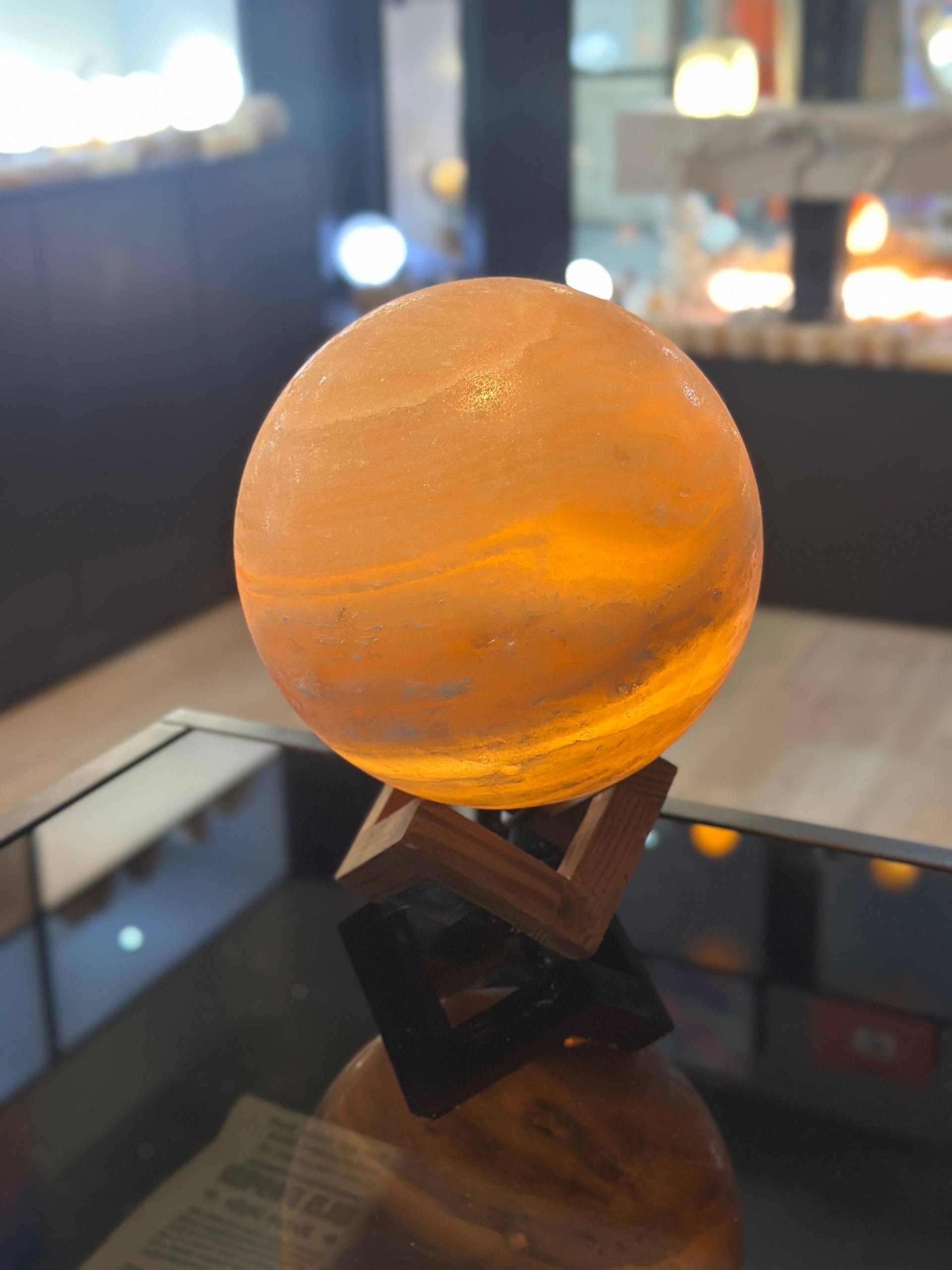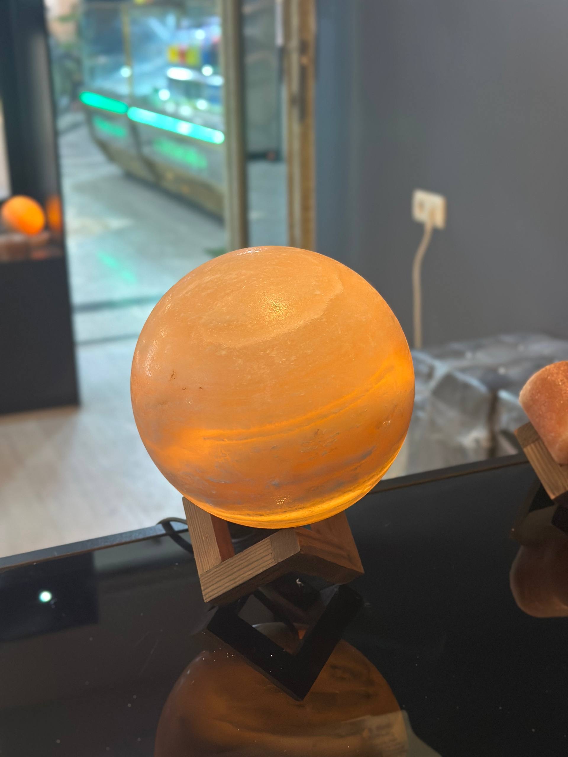 آباژور سنگ نمک طبیعی گوی 16 پایه چوب