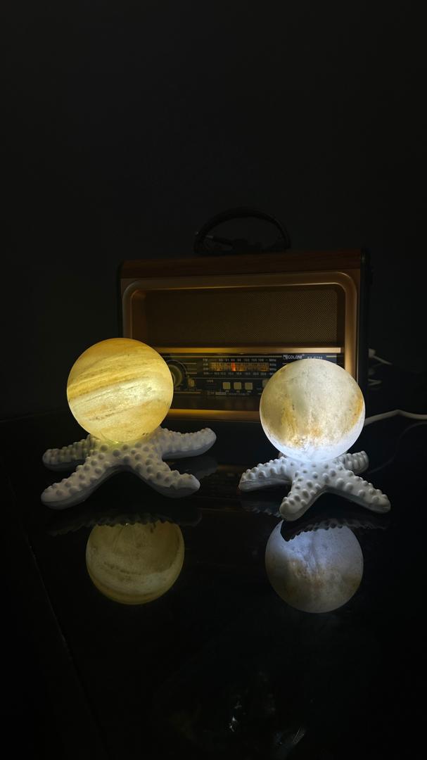 آباژور ستاره دریایی با گوی 8 سنگ نمک جنس مجسمه از پلی استر جنس گوی از سنگ نمک طبیعی هر سنگ نمک با دیگری متفاوت است و هیچ محصولی کاملا یکسان نیست