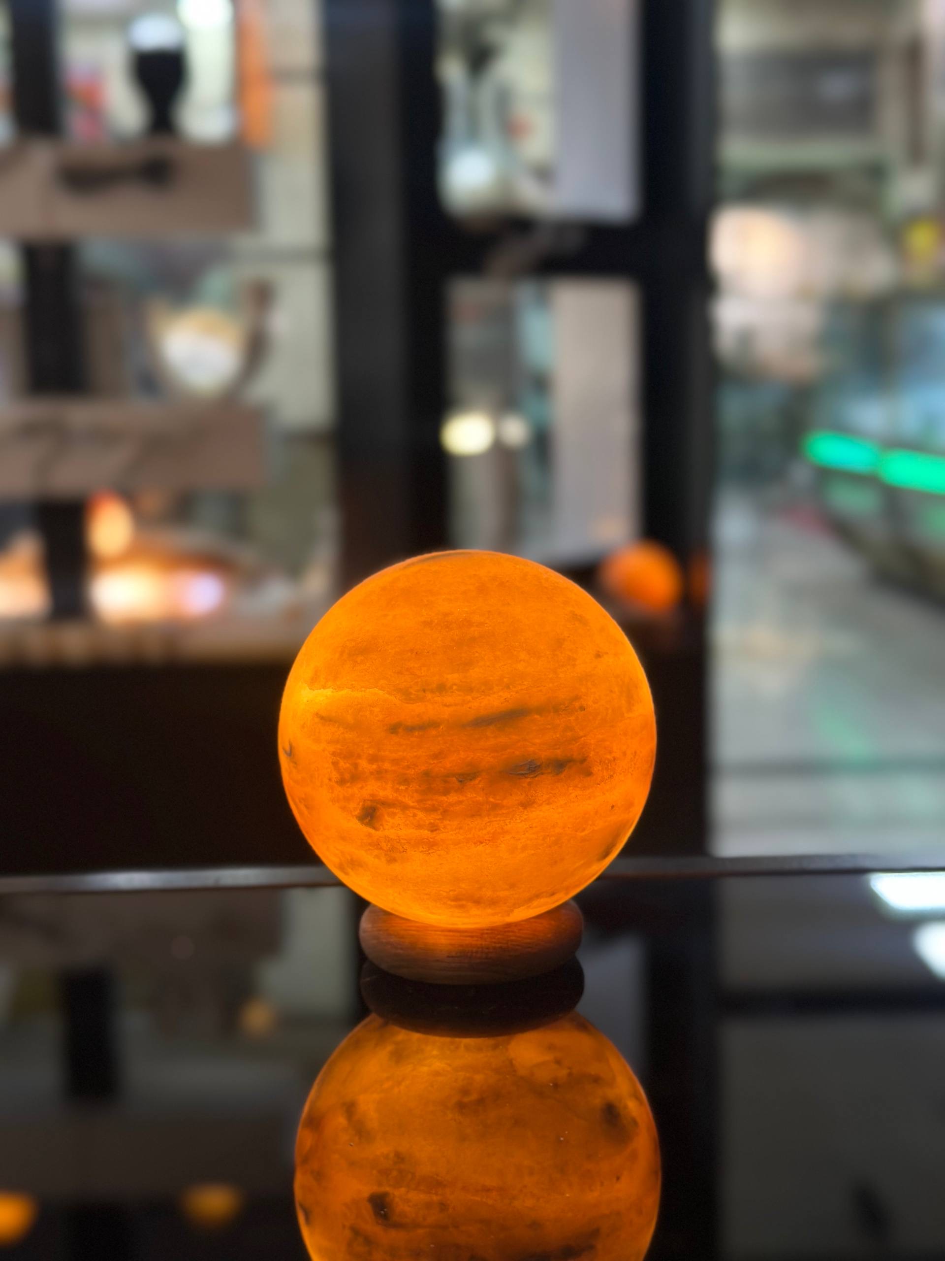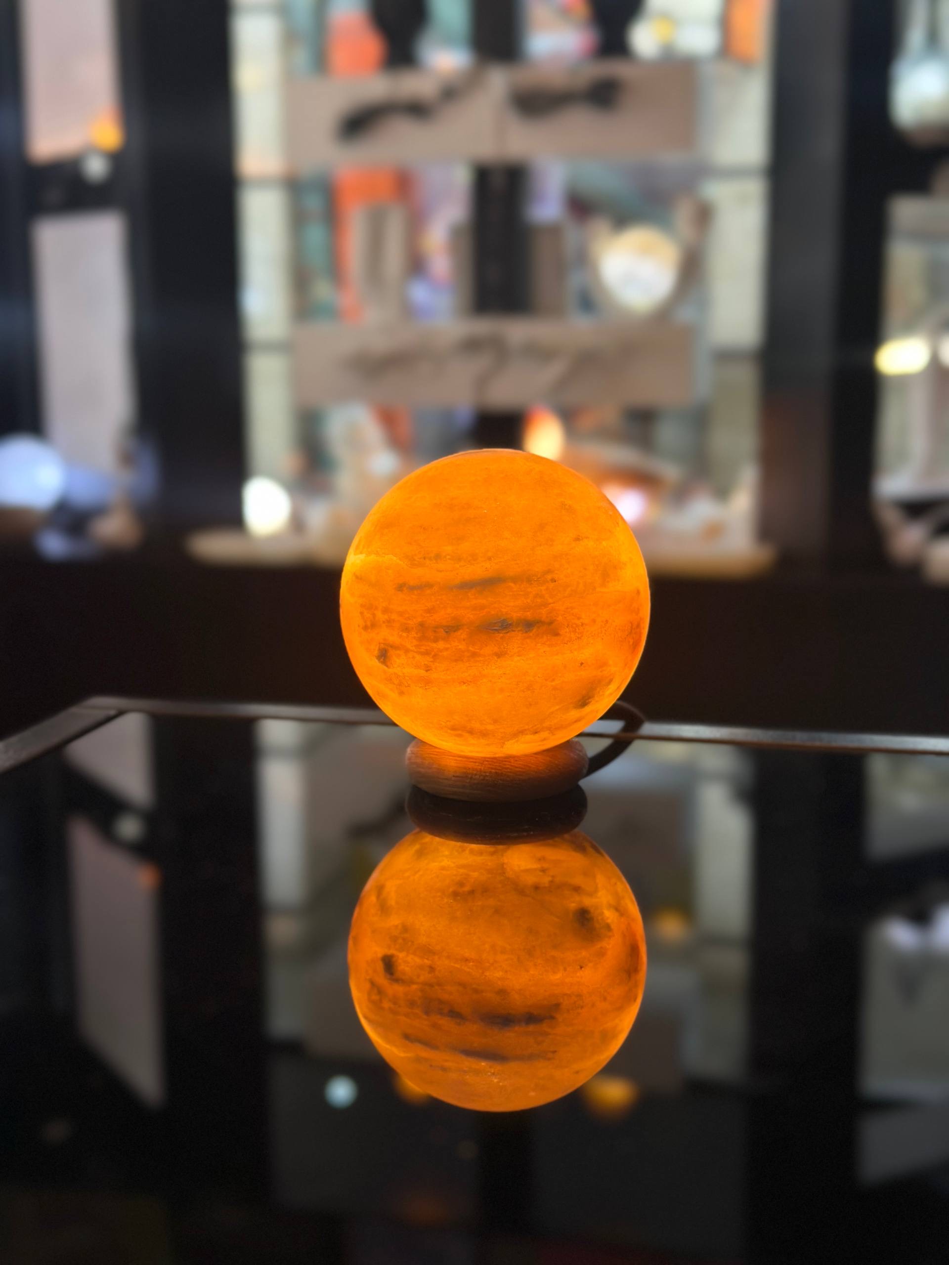 آباژور سنگ نمک گوی 8 پایه حلقه جنس مجسمه از پلی استر جنس گوی از سنگ نمک طبیعی هر سنگ نمک با دیگری متفاوت است و هیچ محصولی کاملا یکسان نیست