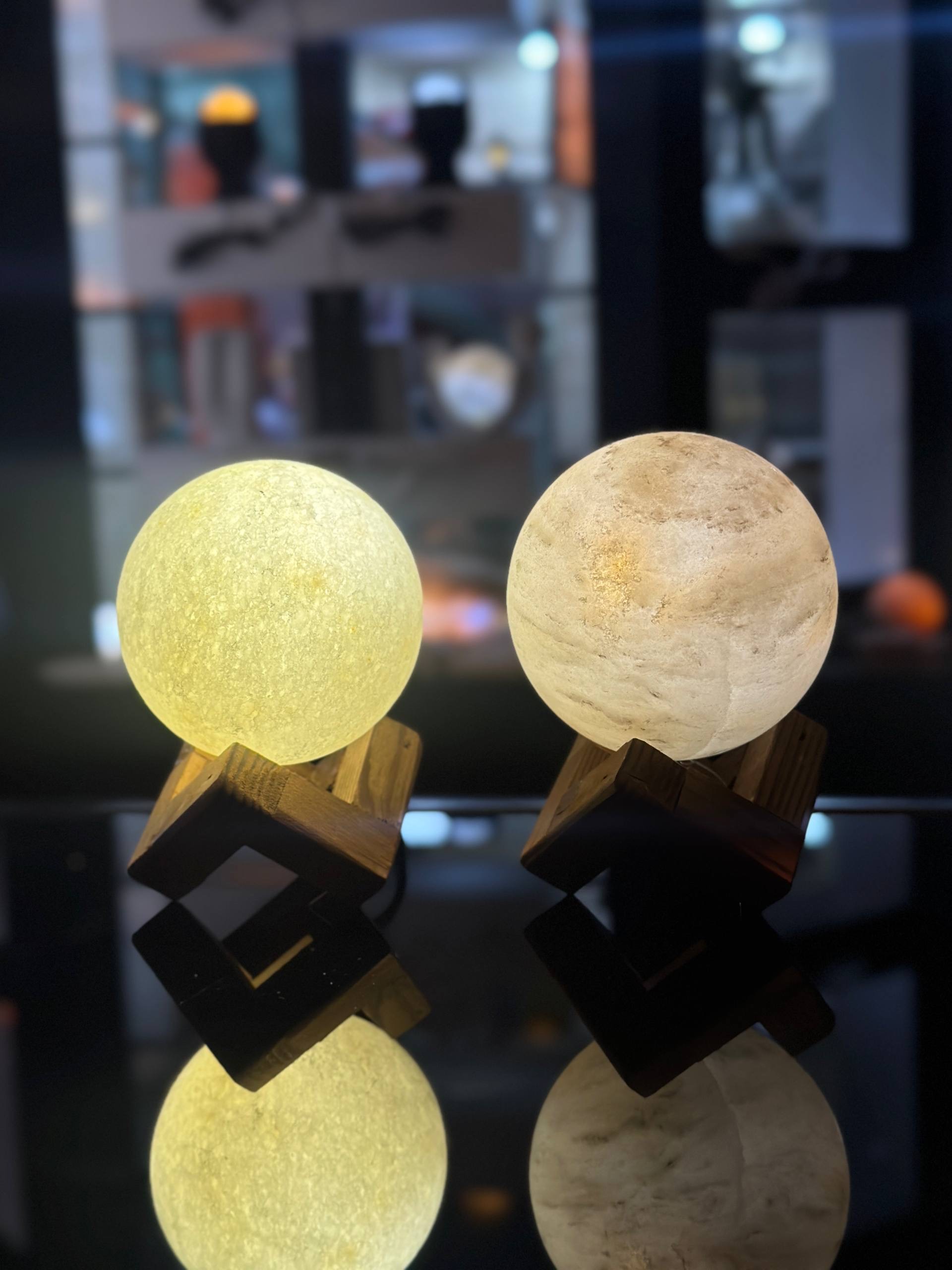 آباژور سنگ نمک گوی 8 پایه هفت هشتی چوبی جنس مجسمه از پلی استر جنس گوی از سنگ نمک طبیعی هر سنگ نمک با دیگری متفاوت است و هیچ محصولی کاملا یکسان نیست