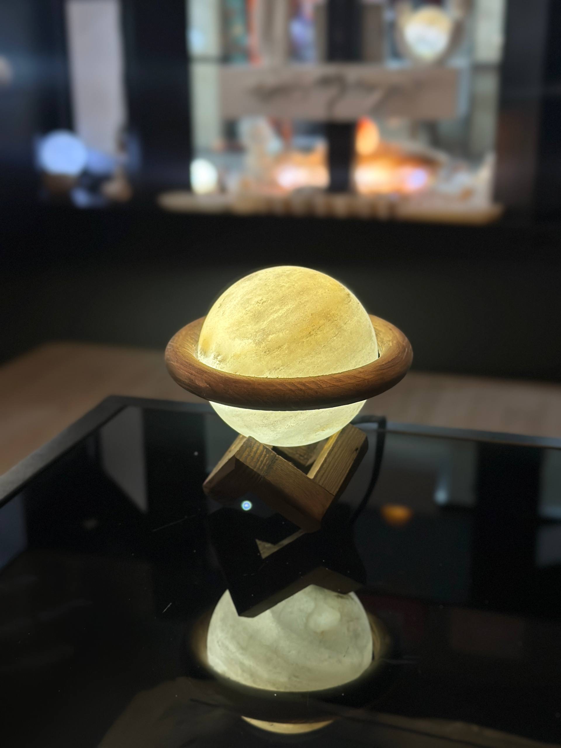 آباژور سنگ نمک گوی8 سیاره با پایه هفت هشتی جنس مجسمه از پلی استر جنس گوی از سنگ نمک طبیعی هر سنگ نمک با دیگری متفاوت است و هیچ محصولی کاملا یکسان نیست