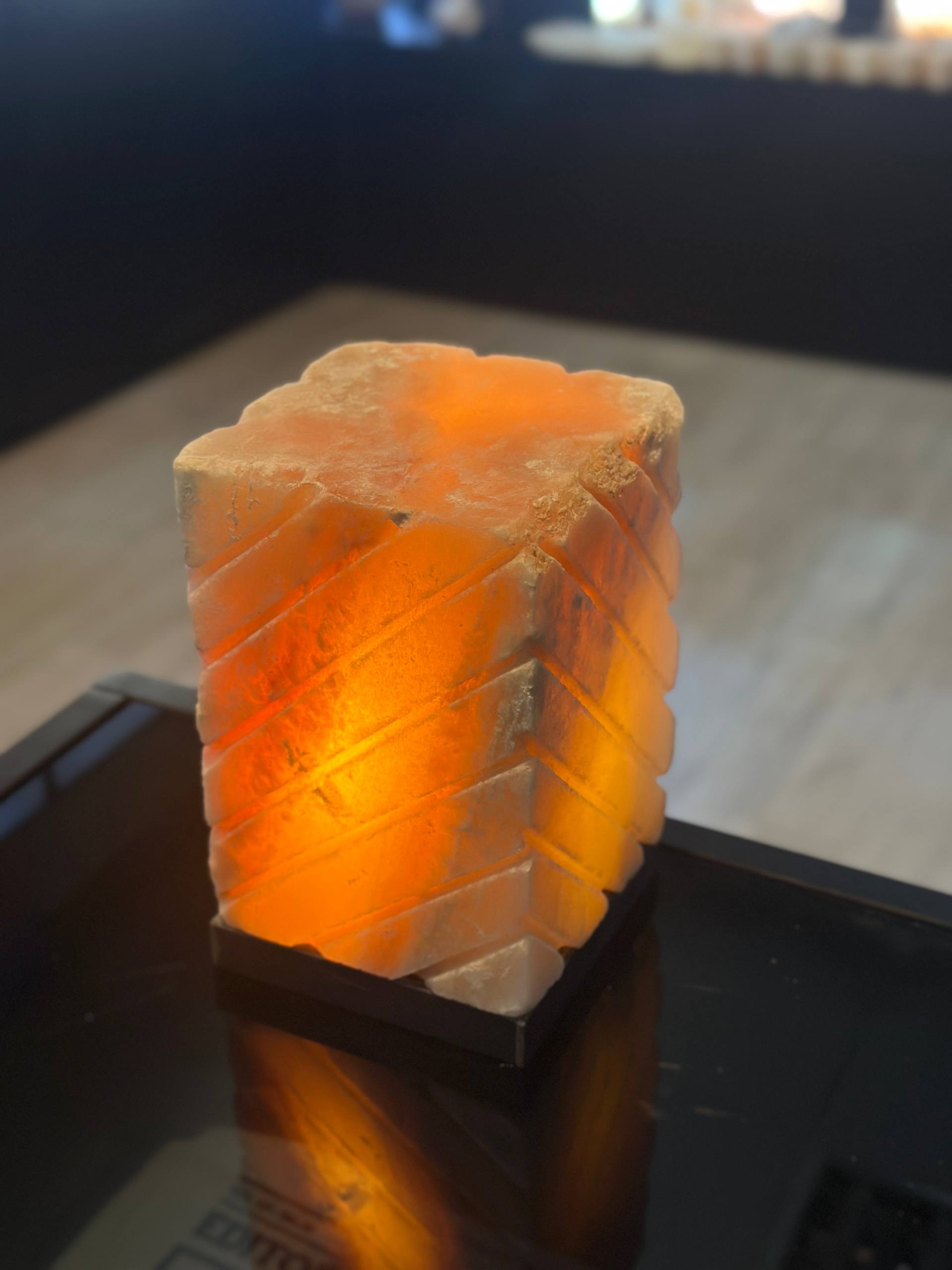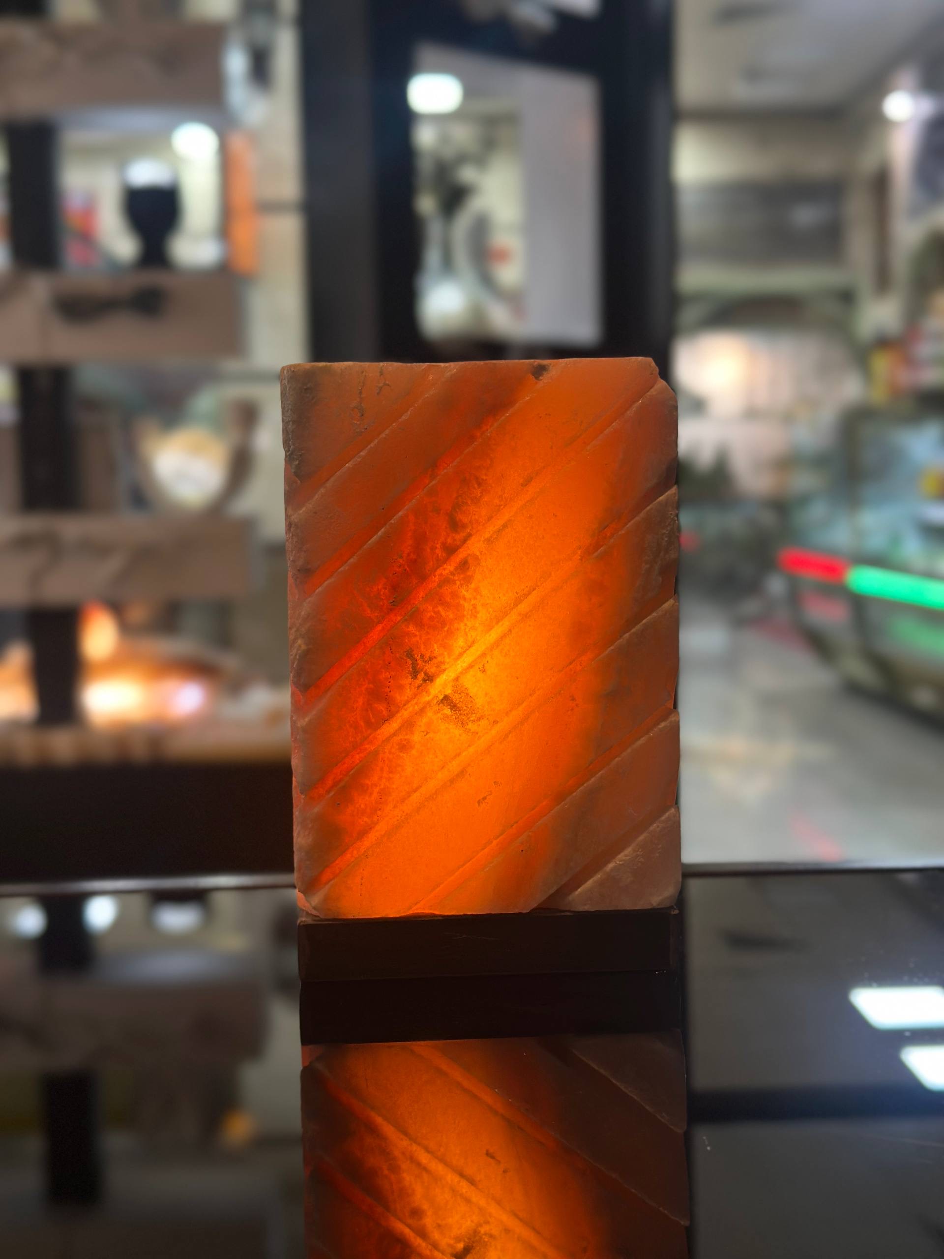 آباژومستطیل ایستاده سنگ نمک جنس مجسمه از پلی استر جنس گوی از سنگ نمک طبیعی هر سنگ نمک با دیگری متفاوت است و هیچ محصولی کاملا یکسان نیست