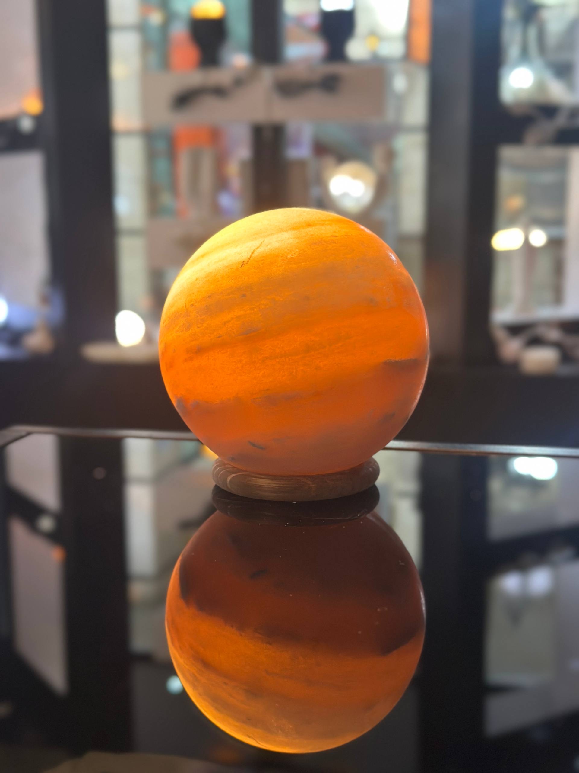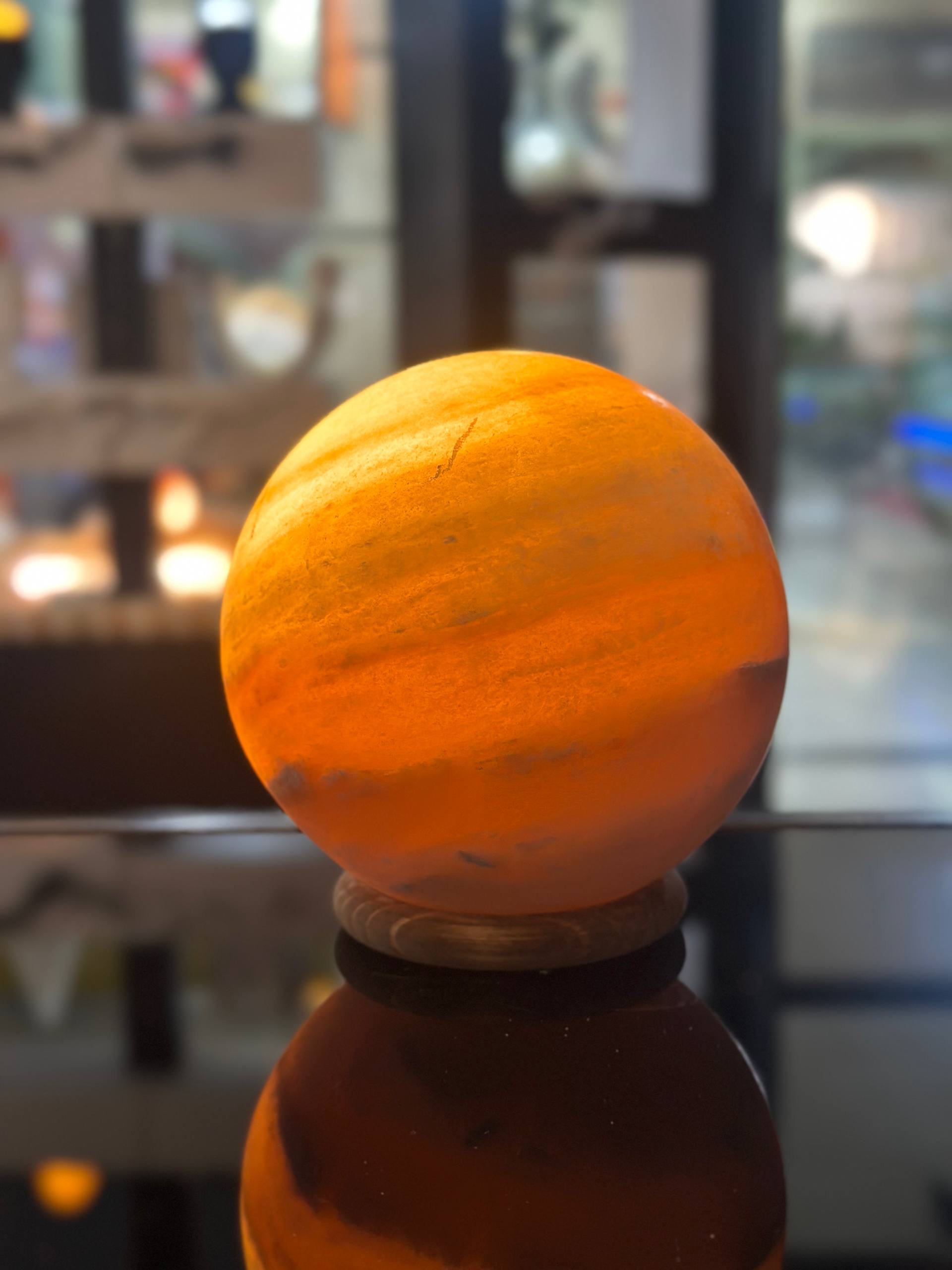 آباژور سنگ نمک گوی 12 پایه حلقه جنس مجسمه از پلی استر جنس گوی از سنگ نمک طبیعی هر سنگ نمک با دیگری متفاوت است و هیچ محصولی کاملا یکسان نیست