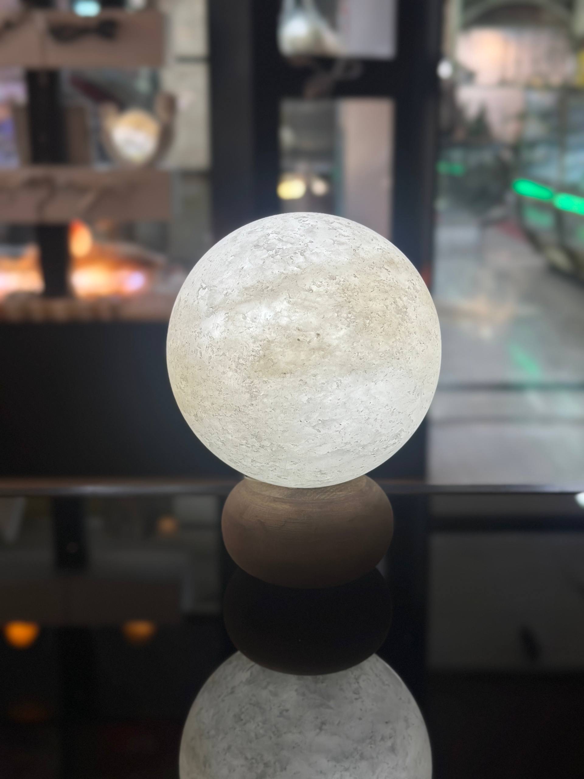 آباژور سنگ نمک گوی12 پایه سی ان سی جنس مجسمه از پلی استر جنس گوی از سنگ نمک طبیعی هر سنگ نمک با دیگری متفاوت است و هیچ محصولی کاملا یکسان نیست